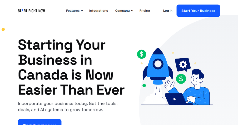Start Right Now is an online platform designed to help Canadian entrepreneurs incorporate their businesses quickly and affordably. It offers a guided process for name searches, document filing, and business setup, eliminating the need for legal counsel in many cases.